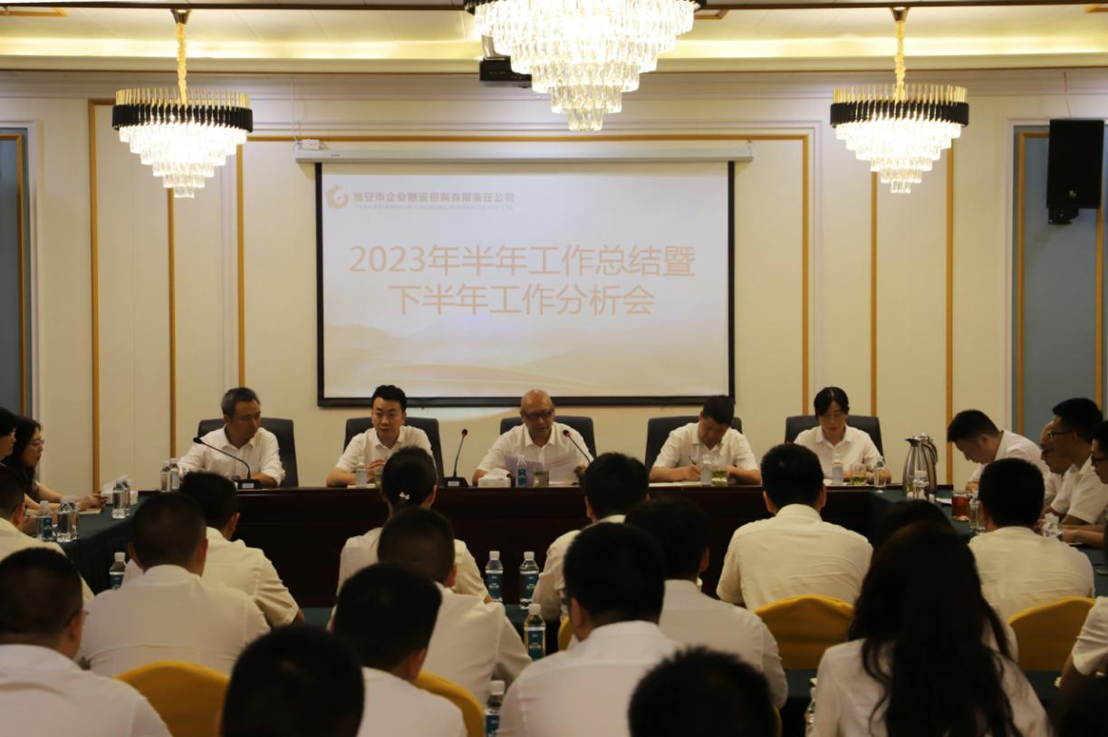 8月3日,市擔保公司黨支部書記、董事長尹福健主持召開2023年半年工作總結(jié)暨下半年工作分析會,總結(jié)公司上半年各項工作,分析研判經(jīng)營發(fā)展形勢,安排部署下半年工作任務(wù),進一步統(tǒng)一思想,搶抓機遇,堅定信心,狠抓落實,確保全面完成今年各項目標任務(wù)。公司全體員工參加會議。