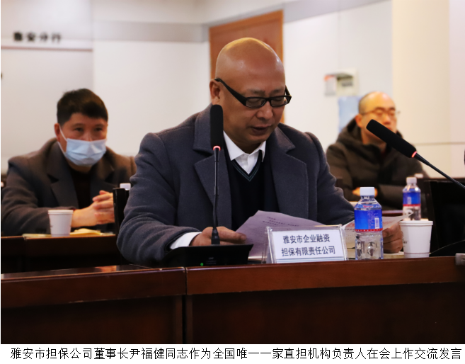 雅安市擔(dān)保公司董事長尹福健同志作為全國唯一一家直擔(dān)機(jī)構(gòu)負(fù)責(zé)人在會上作交流發(fā)言